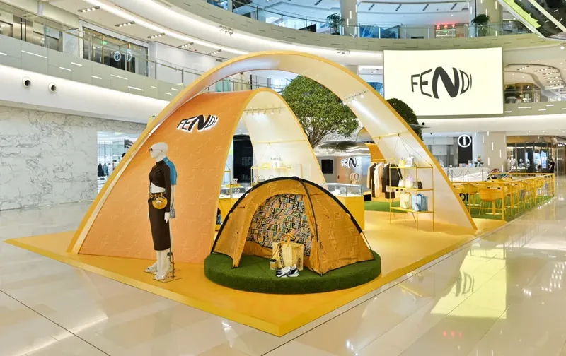 追随露营市场的潮流的公司还在增加。奢侈品集团LVMH旗下多个品牌都引入了露营元素。今年以来,Prada陆续在北京高端百货SKP-S、上海荣宅开设户外主题的限时精品店;6月初,意大利品牌Fendi在上海环贸iapm商场中庭推出2021夏季胶囊系列限时店,FF Vertigo图案黄色帐篷成为这个快闪店醒目的露营元素。