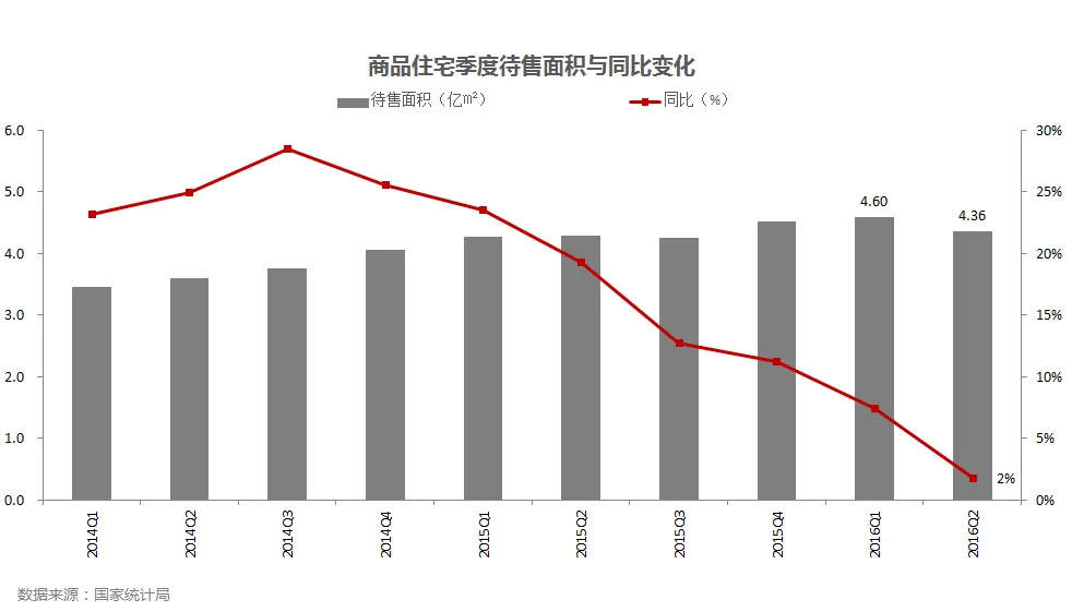 • 二季度商品住宅待售面积4.36亿平方米,与一季度相比,二季度库存绝度量减少0.24万平方米。