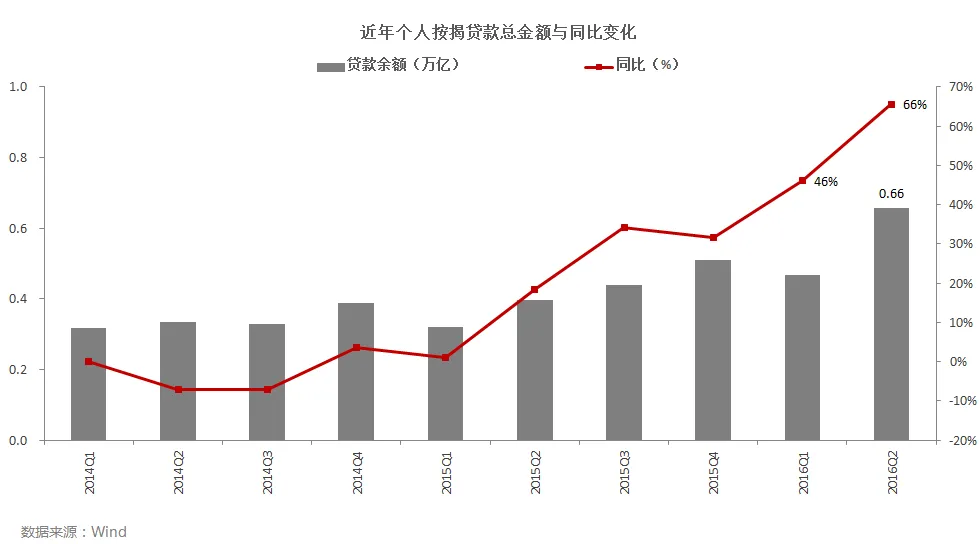 • 2016年二季度个人按揭贷款总金额创出新高,达6574亿元人民币,同比增长66%,增速较一季度提高20个百分点。