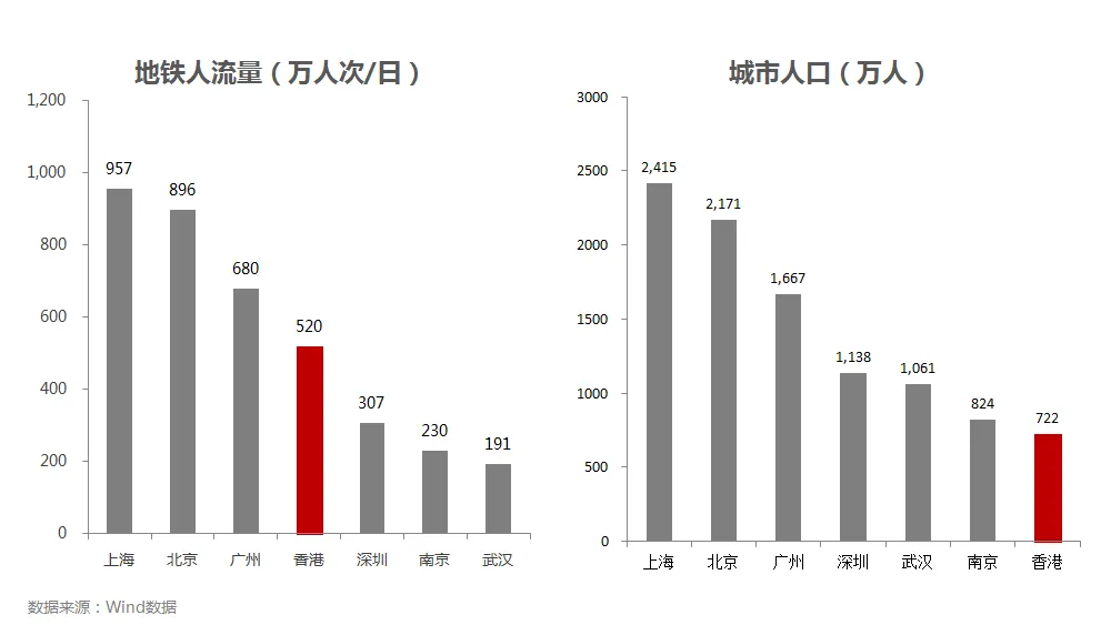 • 经济发达城市对轨道交通的依赖度高,香港地铁人流量520万人次/日,人均日乘车次数为0.7次,而深圳仅为0.27次。深圳与香港的地铁总里程数相近, 住宅物业与轨道交通结合仍有相当的发展空间。