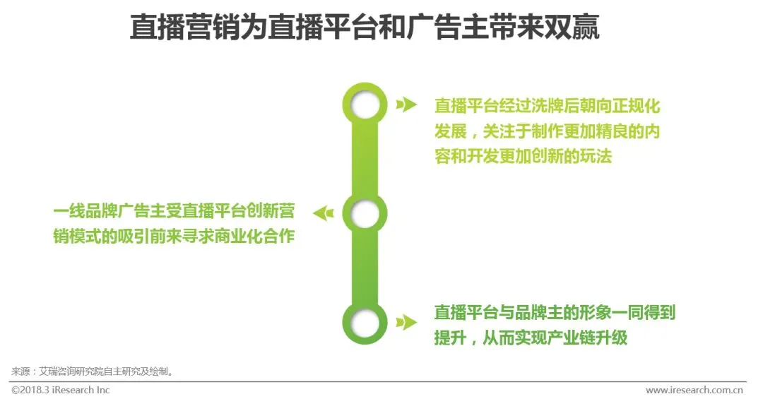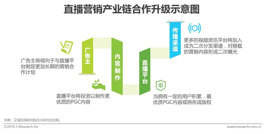 随着直播平台越来越正规化且制作内容越来越精良,在扩大流量的同时,各平台也致力于摆脱过去大众附加在直播行业之上类似于“低俗”的负面标签。以更多创新的、长期的营销模式去吸引大型广告主的合作,不仅能够提高平台本身的商业变现能力,更能够将品牌主与直播平台的形象一同进行提升,拓宽企业资源,从而实现产业链升级。与直播相结合的营销方式正是在这一背景下受到了越来越多直播平台的重视。