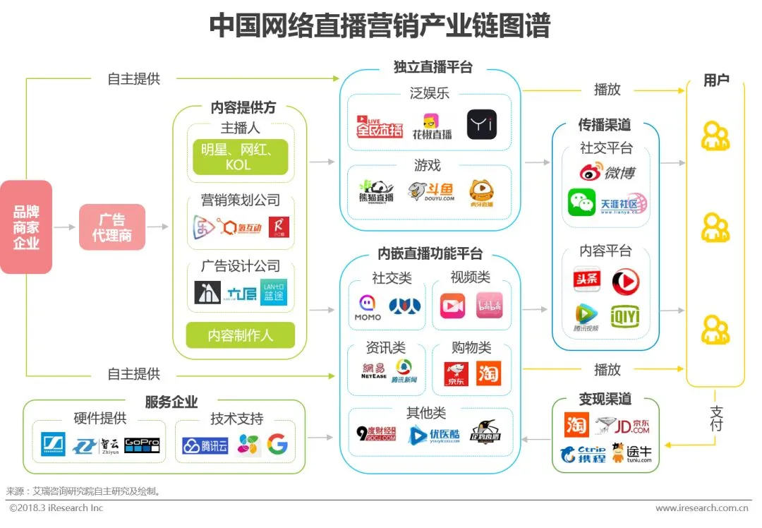 (2)下游传播渠道:由于各大直播平台的PGC和PUGC内容制作越来越精良,更多的视频、短视频、资讯平台或将加入产业链下游形成直播录制内容二次分发渠道,相应搭载的营销内容也将形成二次曝光,为广告主带来了更多的权益。