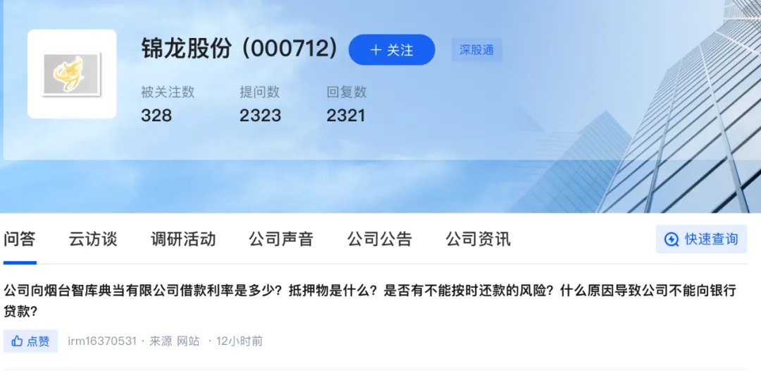 作为拥有两家券商牌照的上市公司,锦龙股份向典当公司借钱,无疑令投资者感到意外。投资者互动平台上已有投资者对此提问,涉及典当公司的借款利率、按时还款风险等。但截至1月17日,上市公司未对此答复。