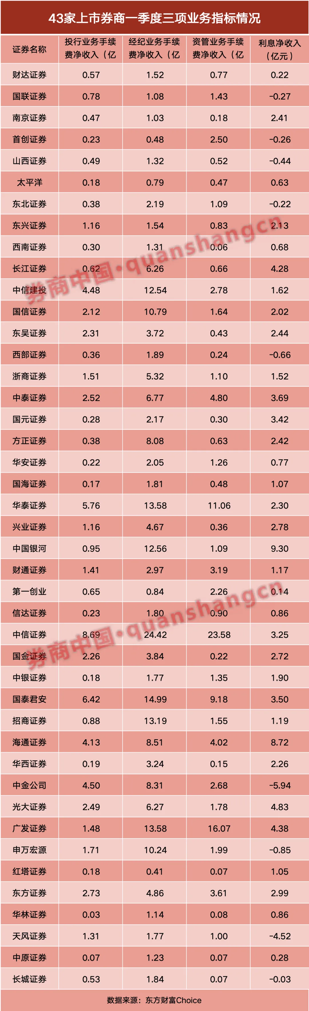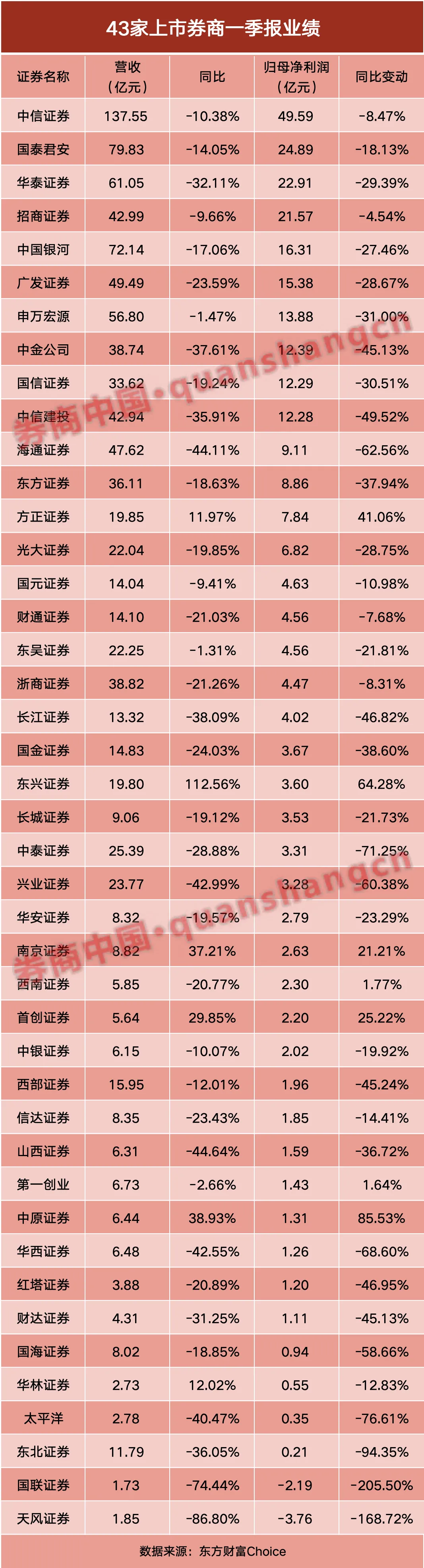 43家上市券商一季度成绩单悉数出炉。