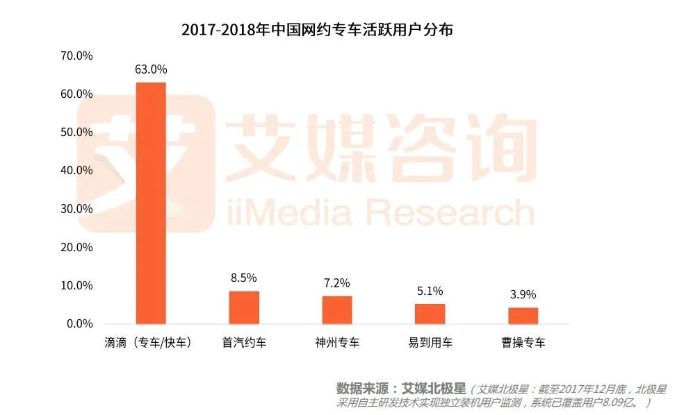 艾媒咨询发布了《2017-2018中国网约专车行业市场研究报告》,报告显示在网约车活跃用户量分布上,首汽约车占比8.5%成为行业第二名。