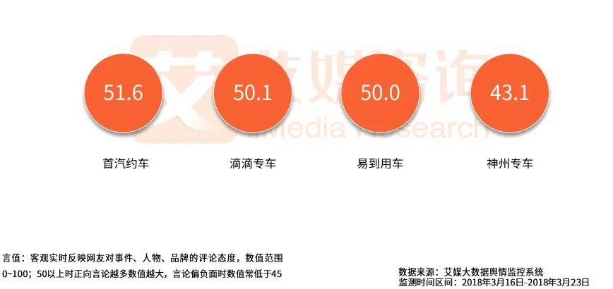 首先在舆情方面,据艾媒大数据舆情监控系统数据显示,2018年3月16日至3月22日期间,首汽约车言值(言值:客观实时反映网友对事件、人物、品牌的评论态度的数值)为51.6,展现正向积极舆情,滴滴专车及易到用车言值分别为50.1和50.0,神州专车言值则为43.1,都低于首汽约车。优秀的正向舆情展现与首汽约车自身过硬的服务品质不无关系,首汽约车在市场上拥有良好的用户反响,乘客投诉率低,大多数用户都认为首汽约车服务出色,且在业务上比其它平台更加专业熟练,这些都为首汽约车带来了积极正面的企业形象。