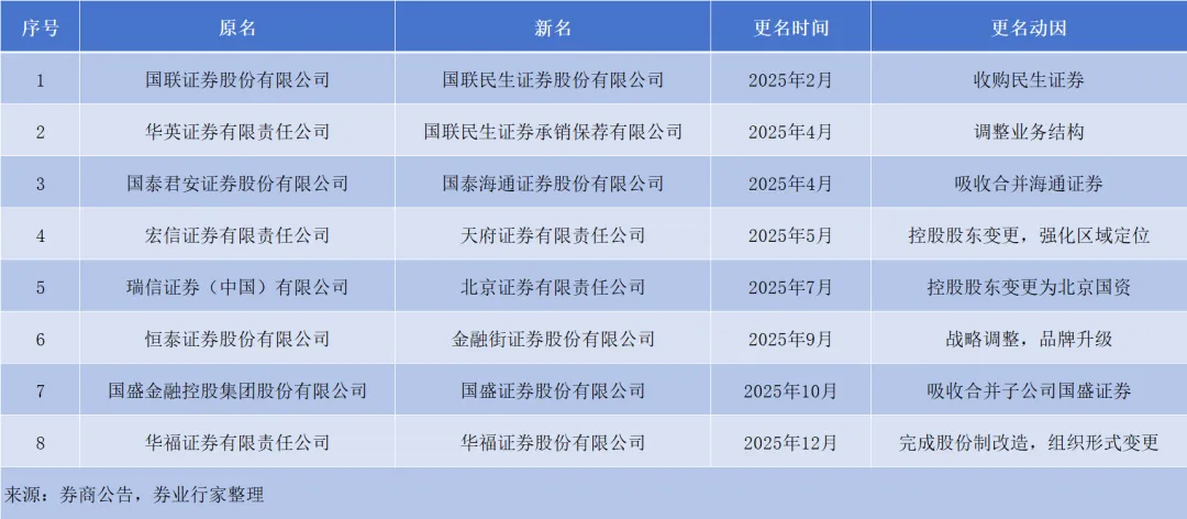 2025盘点 | 8家更名券商,原因不同