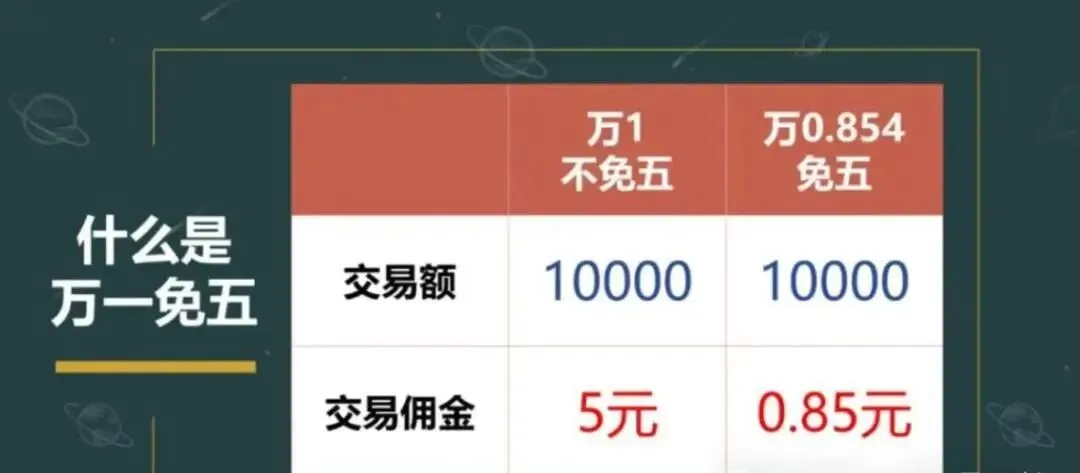 • 普通万2.5账户(不免五):理论佣金:8000元 × 0.025% = 2元实际扣费:5元 (因为不足5元,按5元收取) • 我们的专属万0.85账户(免五):理论佣金:8000元 × 0.0085% = 0.68元实际扣费:0.68元 (因为免五,实收实付)