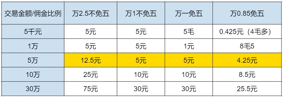 你可能觉得,万2.5和万1的费率,听起来差不了多少嘛。交易一万块,不就差1.5元?但你忽略了一个最致命的“霸王条款”——“单笔交易佣金最低5元”。