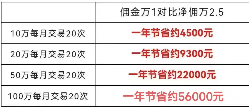 所以,找对佣金低的开户平台很重要,给大伙儿看一张万1和万2.5一年交易下来有何区别。