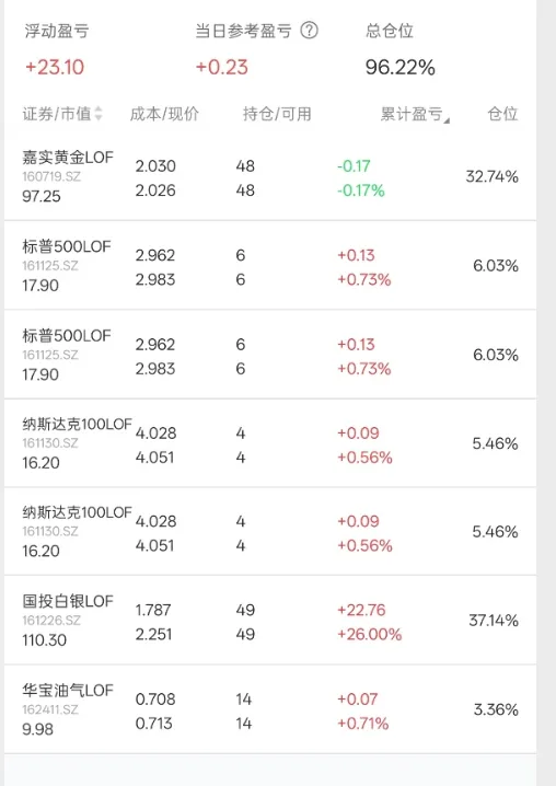 这是我2025年12月30日申购的国投白银LOF,今天一看,收益率已经跑到了26%。