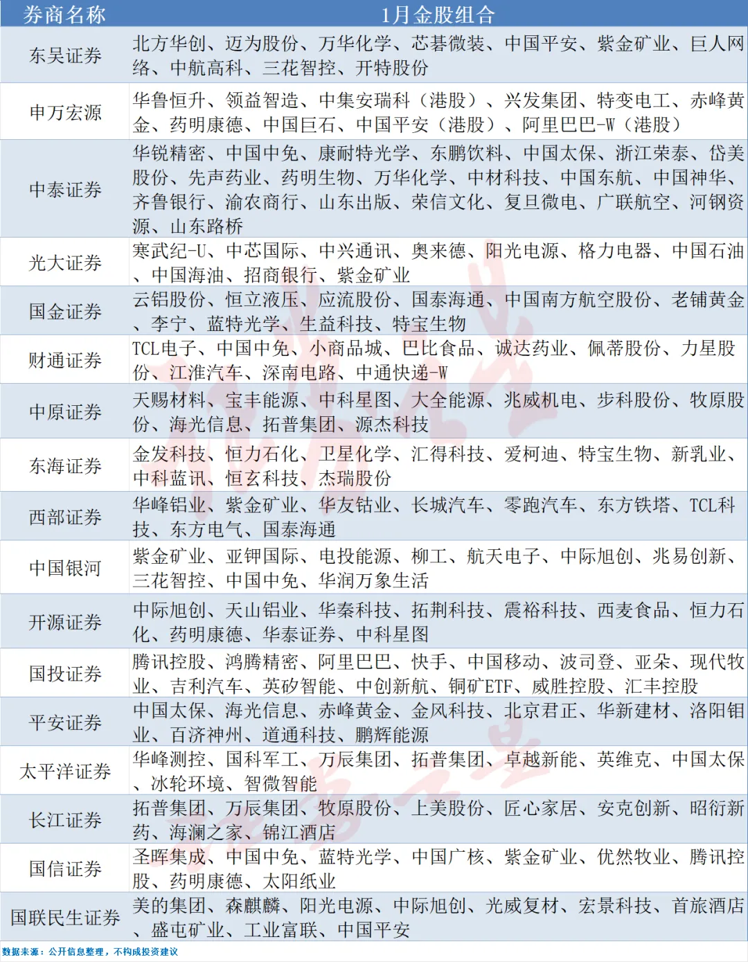 02. 券商1月金股出炉