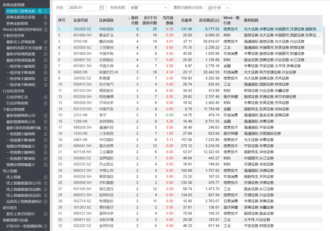 【每日复盘】1月展望及最新券商金股合集展望1月,A股延续上行趋势,继续演绎春季攻势的概率较高。1月临近春节市场或存在风格分化,市场或仍维持窄幅震荡下的结构性行情。 基本面方面,开年之后,地方政府专项债发行有望提速,中央预算内投资加两重项目有望提速,政府开始和投资数据有望回暖。基本面将会走向边际好转。1月是上市公司业绩预告披露时间窗口,2025年四季度由于2024年同期业绩基数较低,年报业绩预报披露的同比增速有望明显回升。资金面方面,由于赚钱效应积累,开年后国内各路资金进一步加仓A股的概率较高。近期人民币升值较为明显,在经济预期转暖后,外资重新回流A股概率也明显提升。因此,A股在1月继续走震荡向上走势,创前期新高的概率进一步加大。1月,围绕业绩披露的博弈情绪将会明显升温。业绩超预期或者业绩披露后靴子落地的方向值得重点关注。总体来看,我们依然关注投资驱动顺周期涨价方向,服务业消费和以国产算力为代表的自主可控领域。需重点关注几个方面:(1)业绩:1月市场迎来业绩预告密集披露期,市场或回归业绩主线。策略上聚焦三大主线:一是高景气高弹性方向,建议继续关注光模块等AI硬件方向,储能、锂电等新能源方向以及有色金属方向;二是市场热点赛道方向,可关注商业航天、机器人等方向以及岁末年初的文旅等方向;三是低位大金融方向,可关注业绩确定性较高的券商、保险等非银板块以及年初分红预期下的银行板块。(2)原油:从长期来看,2026 年原油供给过剩格局可能延续。一方面,非欧佩克产油国产量预计增长,如巴西、阿根廷等全球深海资源预期增产,美国页岩油产量快速下滑概率较小。另一方面,欧佩克虽一季度暂停增产,但全年若维持一季度产量不变,预期同比增长幅度也相对有限,而全球石油需求增长速度相对较慢。美国入侵委内瑞拉可能造成短期供给扰动,但难以改变长期格局。对于特朗普而言,原油价格上涨引发通胀会搅乱降息节奏,不利于其相关政策推行及中期选举,所以他可能也会避免这种情况发生。(3)金银:地缘政治对金银价格的影响减弱,美国若通过一些军事行动展示实力,可能导致资金回流美国,不利于金银价格上涨。此外,良好的就业数据使美联储开年降息预期回落,而降息预期通常与金银价格呈正相关,降息预期减弱会对金银价格产生压力。彭博商品指数再平衡,白银权重下降,会引发相关资金抛售白银,对白银价格冲击较大。总体来看,金银价格顶部结构出现,短期内可能面临调整。(4)A股:港股开盘大涨对 A 股情绪有积极影响,但历史上存在 A 股不开盘时港股被资金操作的情况,需加以关注。恒生科技指数有向好趋势,后续要留意 A500ETF 冲量资金平仓情况,避免其对市场造成大幅波动。同时,汇率变动会影响资金流向,进而影响 A 股,险资一季度开门红资金的动向也会为市场提供增量资金或改变资金配置方向。另外,求是对地产的利好评价可能会使资金流向地产相关板块,宇树绿通被叫停可能导致市场风格短期切换,资金从相关板块流出或流入其他板块。