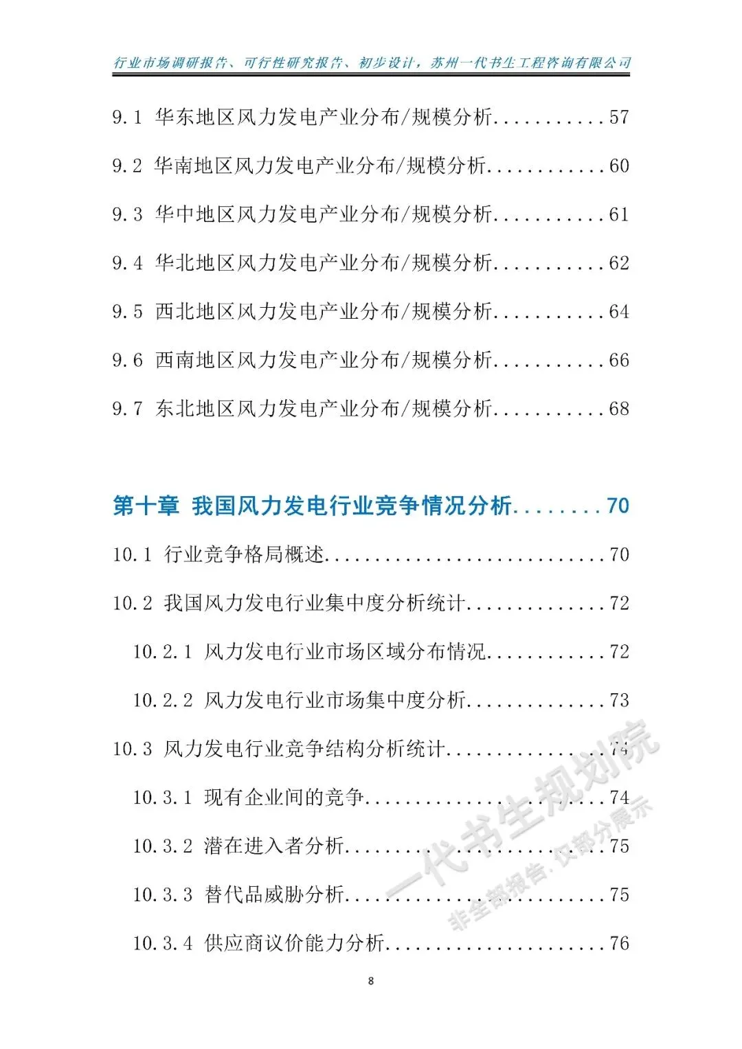 《2026年-2031年我国风力能源产业市场发展趋势分析预测报告》【二】行业调研报告编制说明本报告由苏州一代书生工程咨询有限公司编制,聚焦2026-2031年我国风力发电行业发展周期,深度洞察行业发展脉络与未来走向。报告立足新型能源体系构建与绿色低碳转型的宏观背景,紧扣高质量发展与能源安全保障的核心要求,精准把握产业升级下风力发电市场的需求变革,系统剖析行业发展的核心驱动因素与潜在挑战。调研内容涵盖风力发电技术创新迭代、陆海场景布局演进、全产业链协同发展、绿电融合应用拓展等核心维度,同时兼顾市场主体运营态势、装备制造升级及安全稳定运行等关键议题。报告摒弃单一数据堆砌,通过多维度逻辑推演与趋势预判,梳理风力发电行业从补充能源向主力能源转型的核心逻辑。作为专业咨询成果,本报告为行业运营主体、技术研发机构、能源消费单位提供兼具前瞻性与实操性的决策参考,助力精准把握行业发展机遇,推动风力发电行业实现高效、智能、可持续发展,为完善新型能源体系、支撑经济社会全面绿色转型提供产业支撑。项目可行性研究报告撰写、行业市场调研报告购买或专属定制,联系电话:17312436919。产业规划咨询、概念规划设计