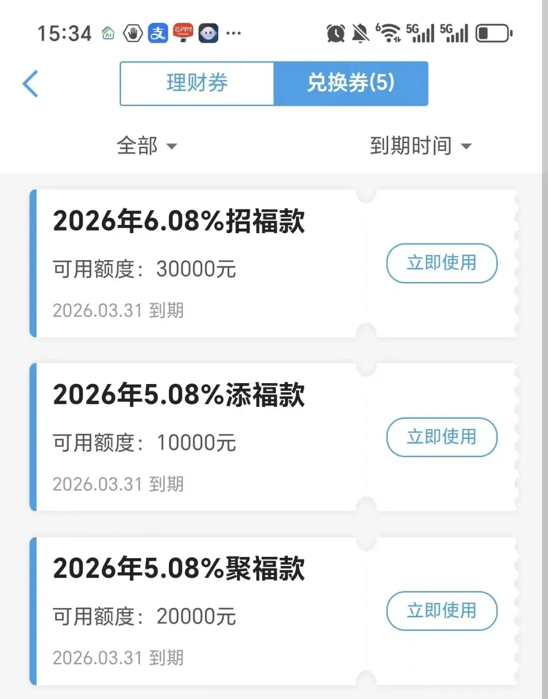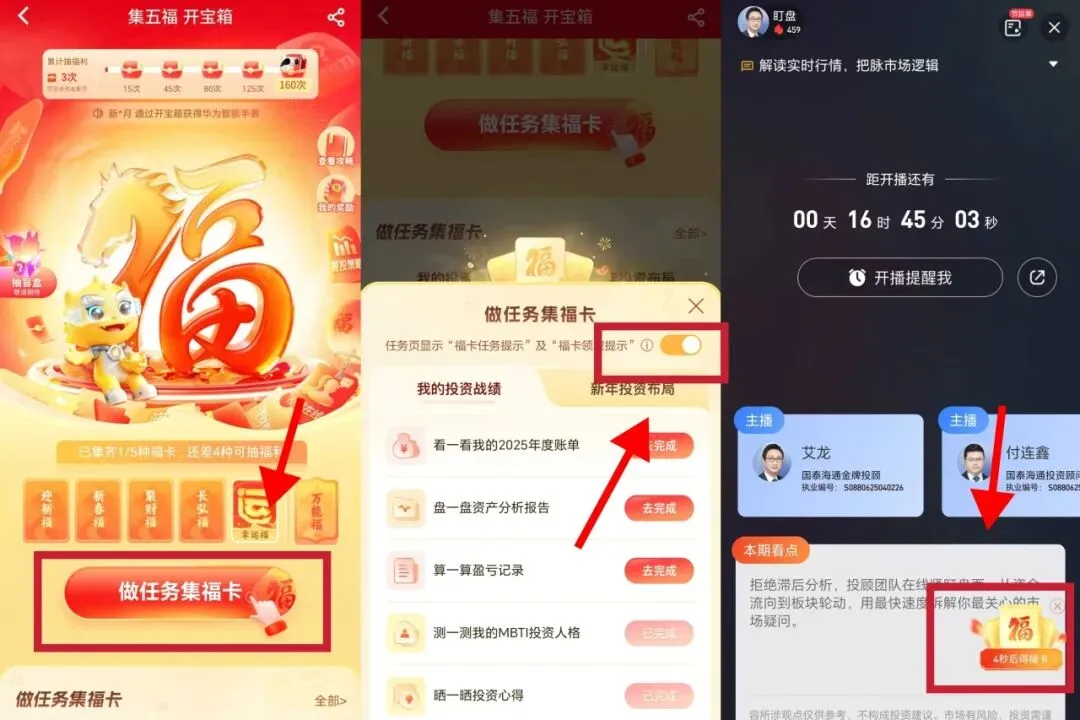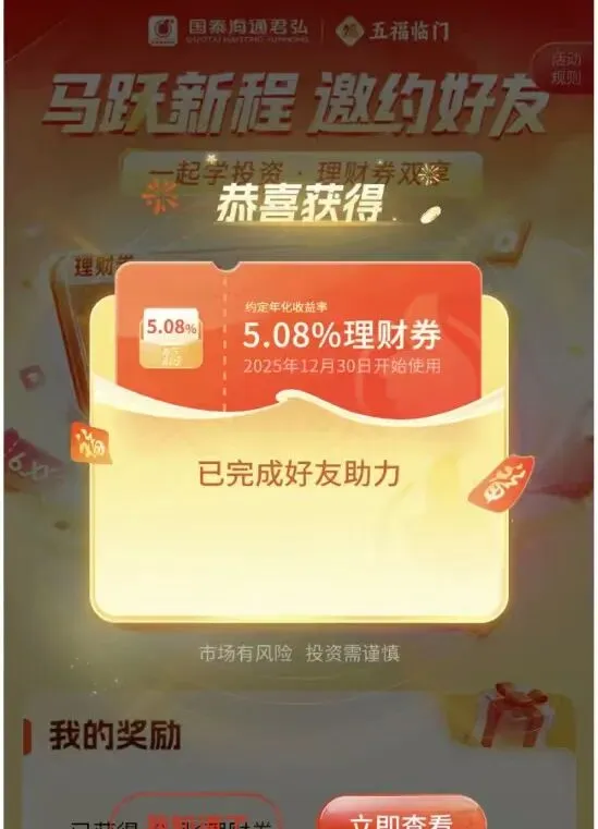 三重礼:集五福卡,完成浏览抽奖任务,得2万5.08%理财券