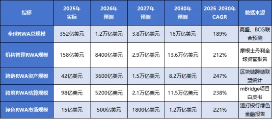 2026-2030年,RWA市场将以“监管标准化、技术深度融合、资产边界拓宽、生态协同深化”为核心,实现从“机构试点”到“规模化基建”的跃迁,2030年全球市场规模预计突破16-30万亿美元,成为连接传统金融与数字经济的核心枢纽,重塑全球资本流动与资产配置逻辑。