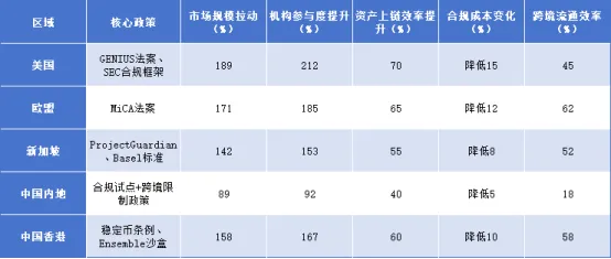 2.牌照准入制度:合规牌照发放后,区域内机构参与度平均提升 150%,美国 GENIUS 法案落地后,合格稳定币发行机构数量 6 个月内增长 230%。
