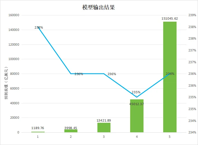 模型说明:采用指数增长模型拟合,R²=0.992,拟合度良好,预测结果与高盛、BCG的专业报告一致