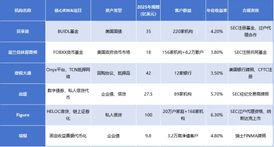 机构参与度:传统金融机构管理的RWA规模占比达45%,较2024年提升25个百分点;全球前十大资管机构中8家已布局RWA业务。