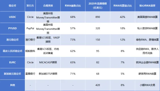 结算工具:合规稳定币(USDC、PYUSD、港元稳定币)成为RWA交易的核心结算工具,占RWA交易结算量的92%,实现“一手交钱、一手交货”的原子化结算,消除交易对手方风险,结算时间从传统的T+1-T+2缩短至秒级。
