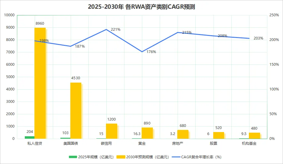 图4:2025-2030年各RWA资产类别CAGR预测