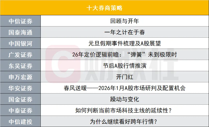 对于即将到来的2026年首个交易日,乃至整个2026年A股市场,投资者应该抱有怎样的预期?开年第一期十大券商策略,各大券商纷纷交出了新年的最新研判。