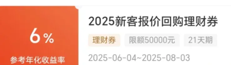 在理财卡券里面领取(需要沪A才可以解锁)。产品5万21天6%,顶格收益约172元。