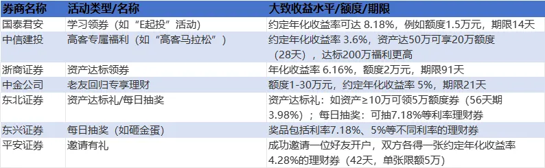 不同券商的生日福利在收益率、期限和额度上各不相同,以下是七家主流券商的生日福利详情: