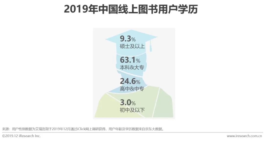 线上图书用户性别较为均衡,男性占比52.4%,略超女性用户占比。年龄主要集中于26-45岁,这部分人群处于职场上升期和人生中成家生子的主要时期,对于图书的消费需求较为旺盛。学历水平较高,本科&大专学历用户占比63.1%,硕士及以上学历用户占比9.3%。