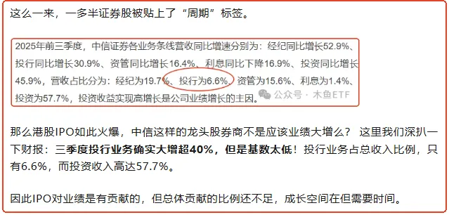 我们分析过,虽然IPO大增,但是投行业务占券商业绩比例较低,目前主要还是靠投资和经纪收入,“看天吃饭”成分还是很高的。成交放量,就是利好。
