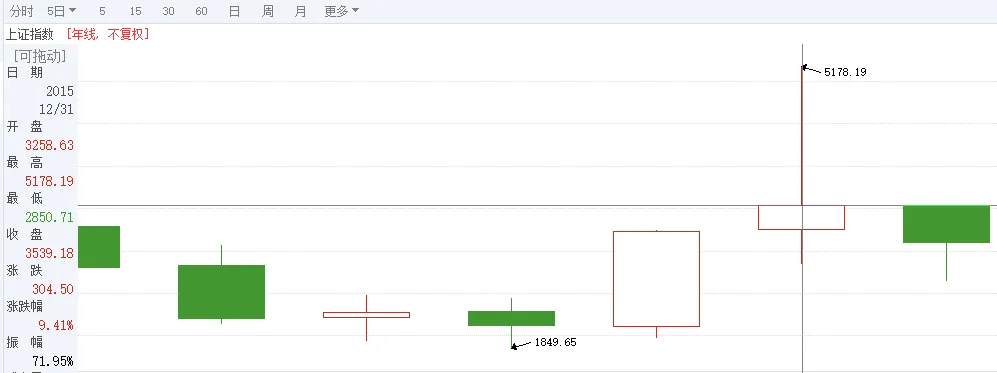 二、2013-2015年大牛市,沪指从1849点起步,高点5178点,上涨280%。