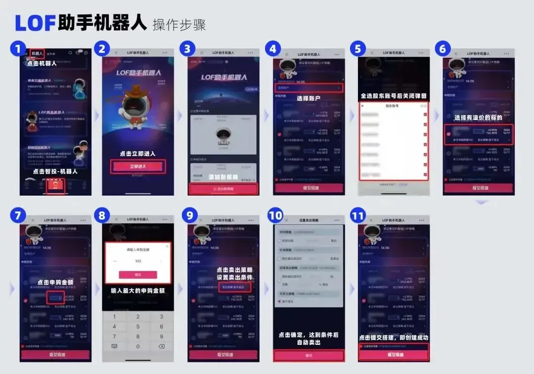 记者从华宝证券官方微信号看到,华宝证券今年4月16日就推出LOF助手机器人。官方介绍表示,LOF助手机器人是基于LOF基金的交易特征,将基金申购与智能卖出相结合的投资工具。支持多账户场内一键申购,可以根据个人投资需求自定义卖出策略,达到卖出条件时自动卖出,同时还支持查询LOF基金实时溢价率,帮助投资者轻松把握LOF基金的价差投资机会。