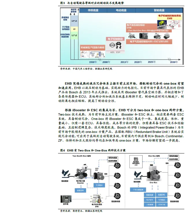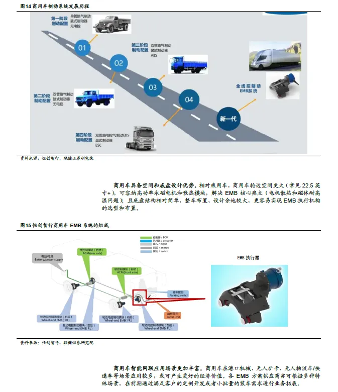 2025 年技术标准落地、2026 年法规制约将解除,进一步加速EMB 上车进程。2025 年5 月,《GB 21670-2025 乘用车制动系统技术要求及试验方法》正式发布,将于2026 年1 月1 日实施,其中首次新增EMB 相关技术要求,填补此前“无标可依”的法规空白。2025 年5 月,《轻型汽车自动紧急制动系统技术要求及试验方法》完成起草,要求所有的乘用车必须安装AEBS,预计将进一步促进EMB 需求增加,推动商业化落地。