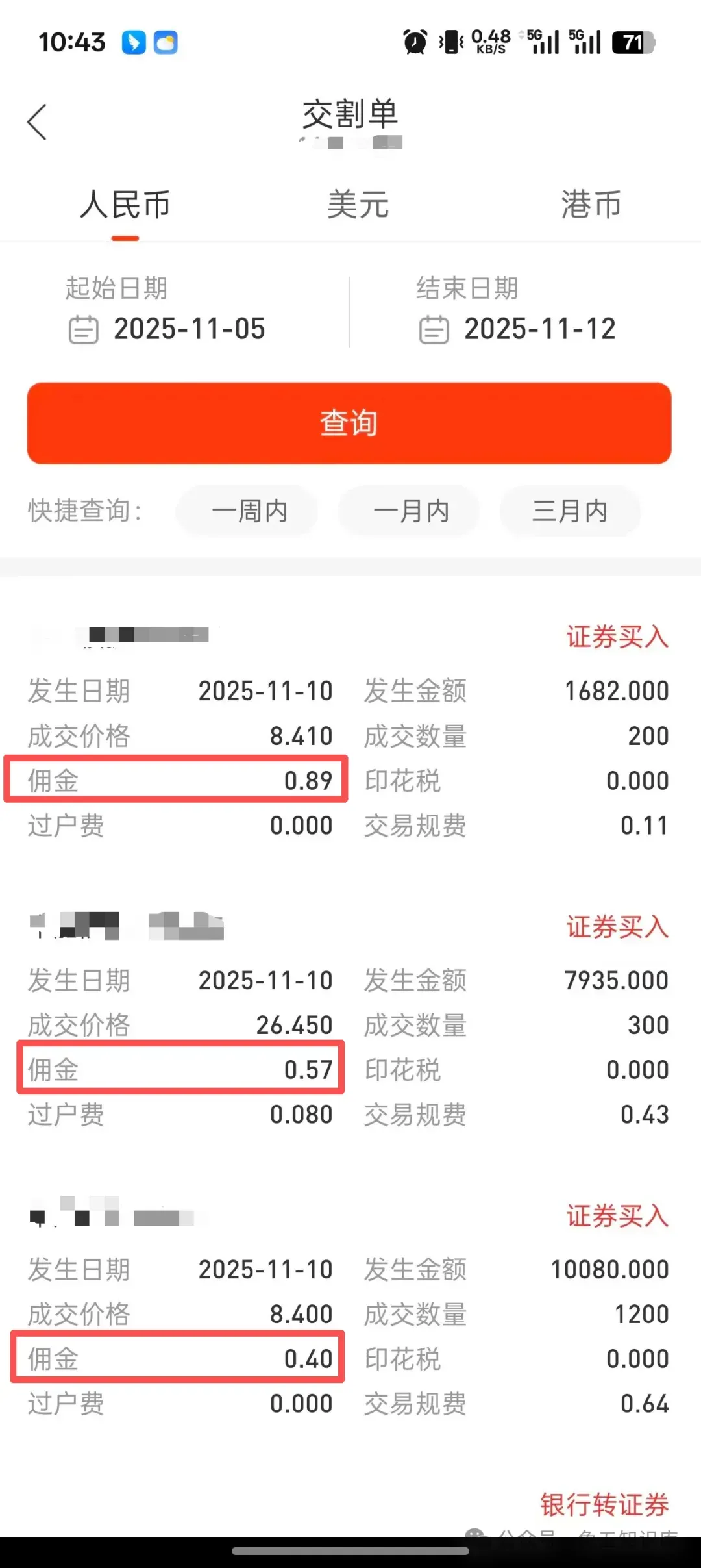 买入1万元,佣金本应1元,却被扣5元。 卖出1万元,佣金本应1元,再扣5元。 完成一笔买卖,佣金就要花10元。