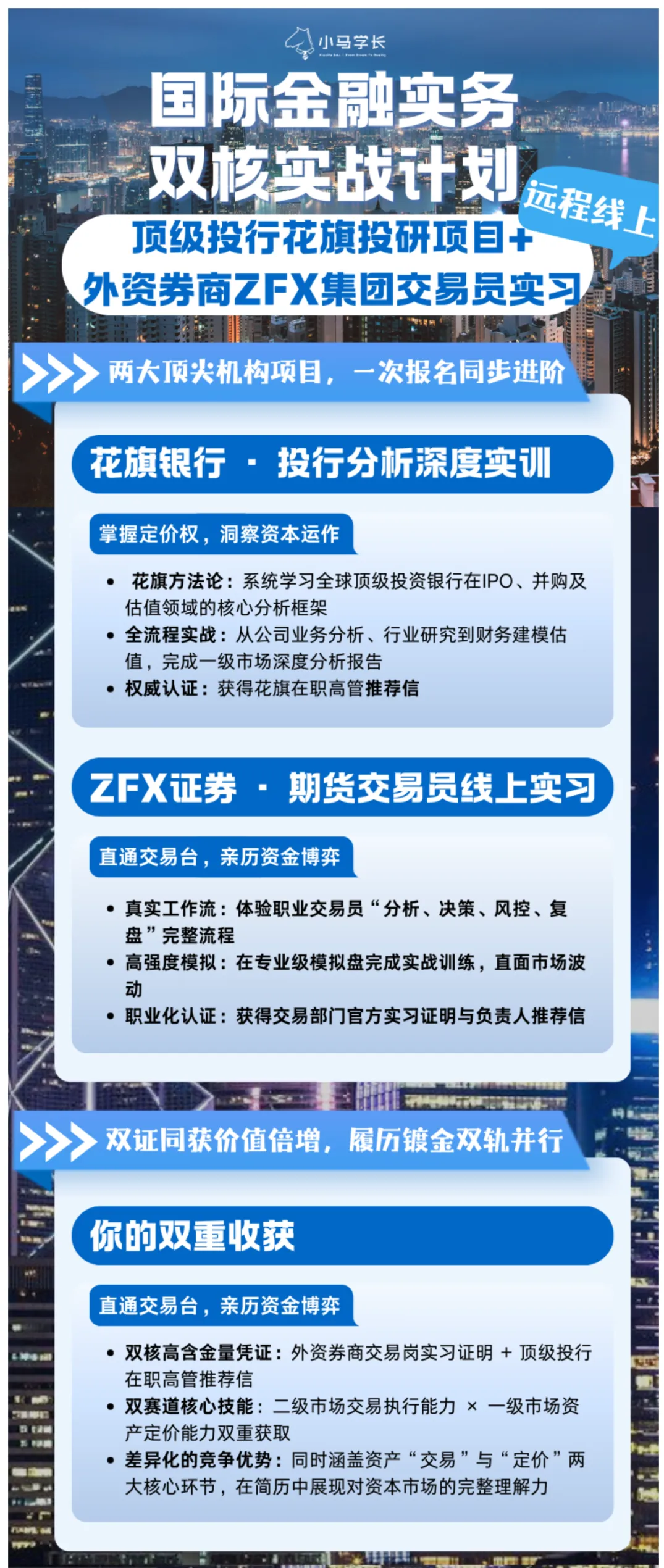花旗投研实训+山海证券交易员实习项目旨在打破单一技能壁垒,首创“交易执行+投行定价”双核培养路径。