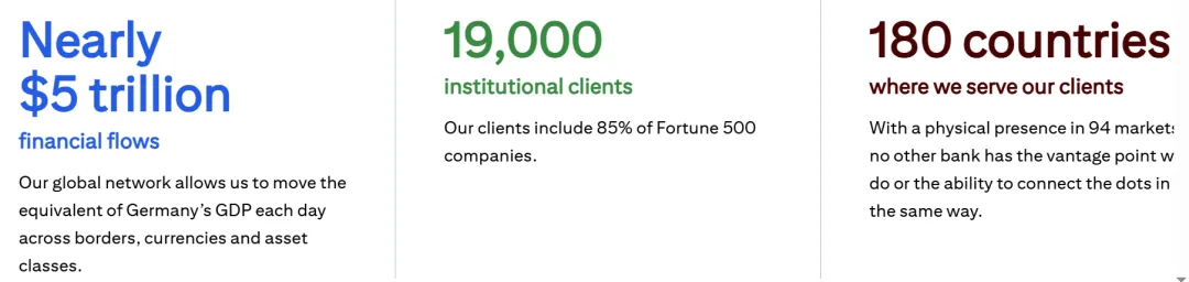 ▶️全球四大投资银行之一,在全球一百多个国家约为二亿客户提供服务。