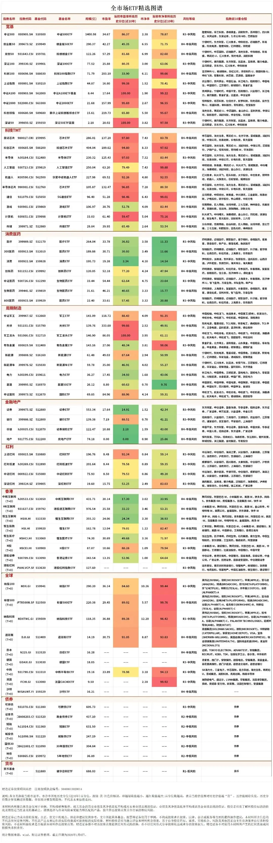 全市场ETF精选统计数据来源:Wind、财达证券整理,截止日期为2025年1月6日