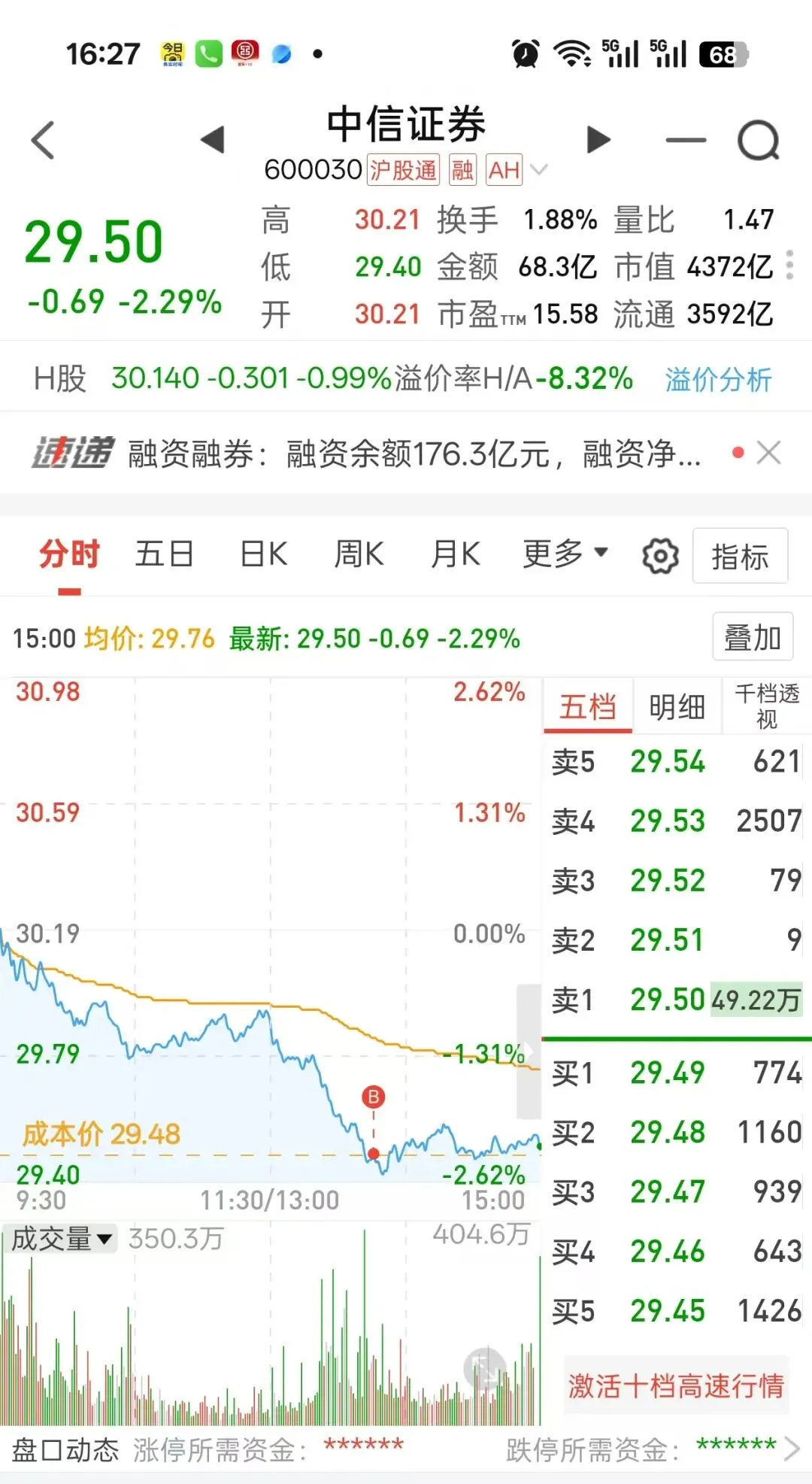 1月7日.券商调整本年度收益5.25%。回撤的太快了,在没有融资的情况下,回撤这么多。今日操作: 高点卖了一半牧原股份。买了一点中移动,尾盘加仓中信证券目前看保险在走主升浪。我不确定券商主升浪的时候,我还有多少仓位