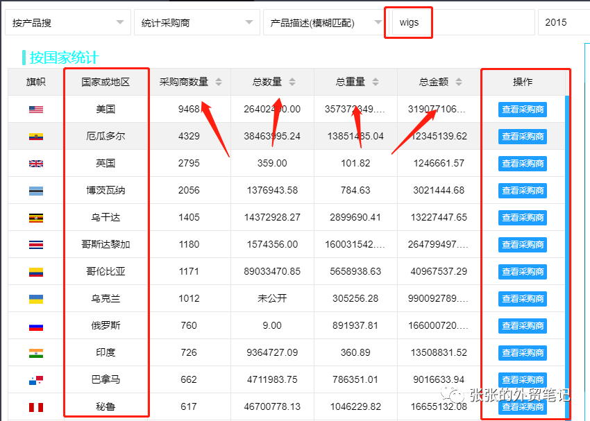 1. 根据产品关键词或HS编码查看每个国家采购商列表,以及进口统计
