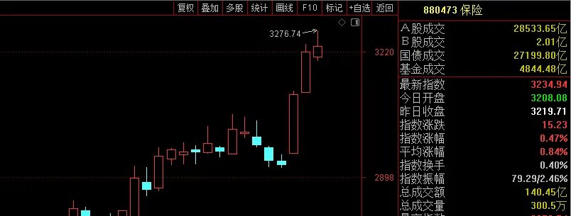 保险指数,三天最高涨10%,从前天收盘到今天最高也有5%。