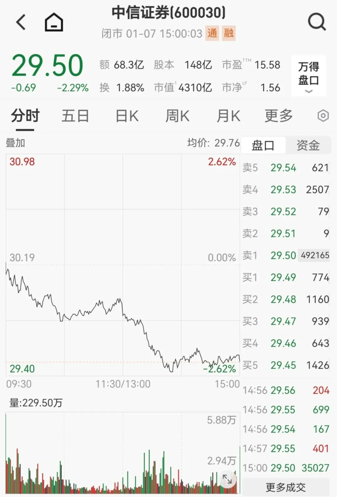 不过个股有异动,中信证券现巨额资金压单。Wind数据显示,中信证券卖一出现49.22万手卖单,按照收盘价计算,卖单金额达14.52亿元。