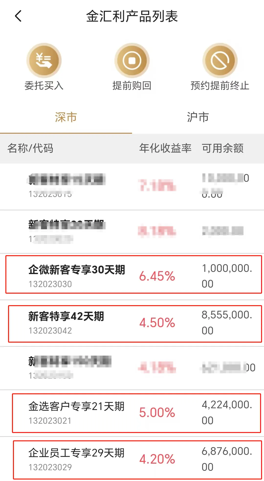 第3天:入金10.1w,购买2万年化收益率6.45%,30天的企微理财,利息106;