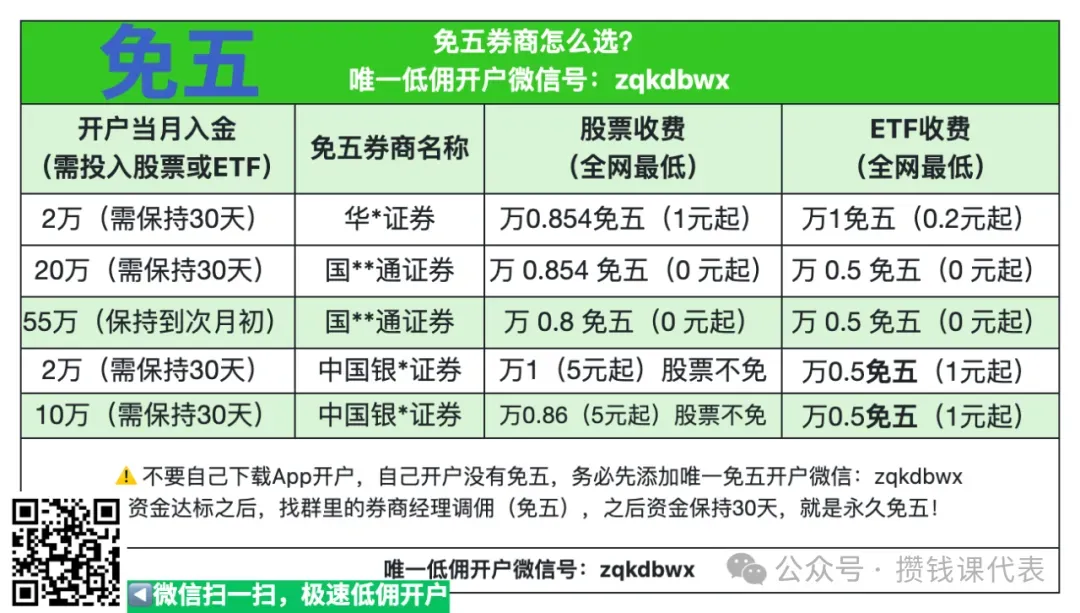 想要开通免五券商,请关注公众号【攒钱导师】,回复【免五】: