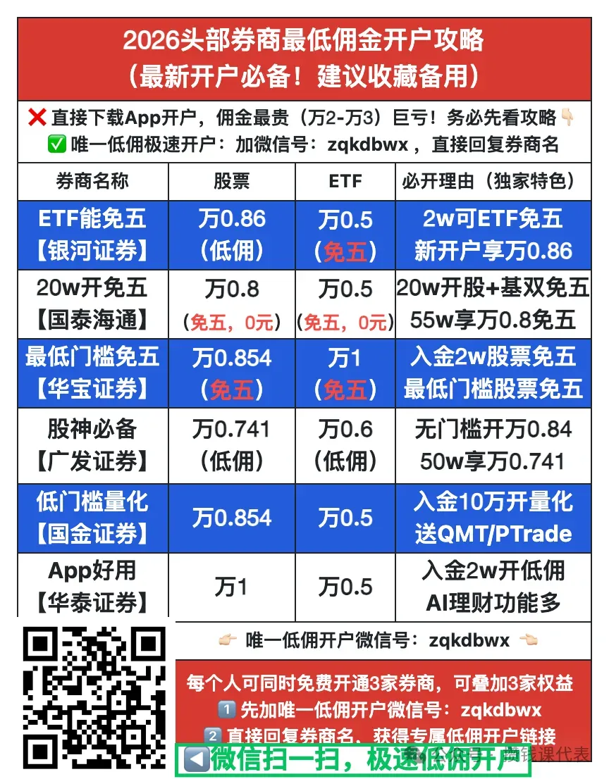 低佣开户方式:关注公众号【攒钱导师】,查看最新的置顶精选,或者回复【开】!