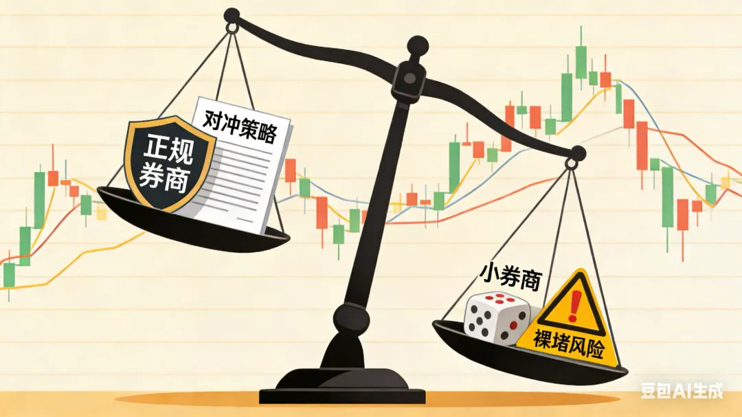先给小白兄弟补个干货:场外期权的核心逻辑是“风险转移”,不是“豪赌翻倍”。正规券商做这笔生意,接了你的单子后,一定会通过动态调整标的资产头寸(也就是Delta对冲)、搭配其他期权组合(Gamma/Vega对冲),把单边行情的风险敞口封死。简单说就是人家赚的是你的权利金,不是跟你对赌行情输赢。但小券商不一样,他们没那个资金实力和专业团队做对冲,本质就是“裸卖期权”——你买看涨,他们就赌标的不涨;你买看跌,他们就赌标的不跌,纯纯的零和博弈,赌的就是你爆仓。