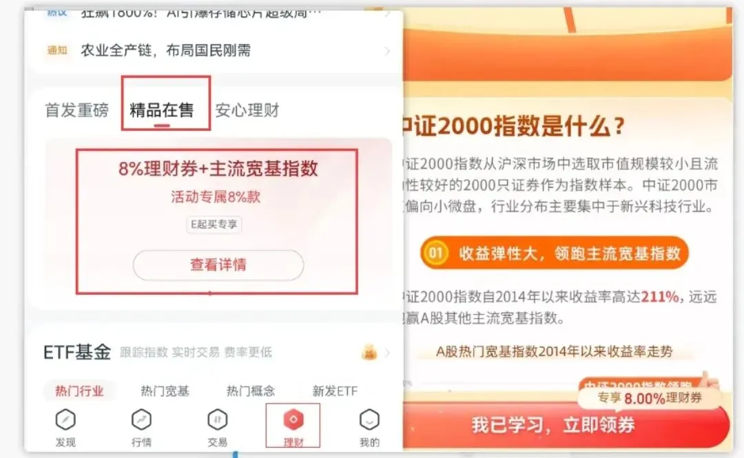 【领取路径】首页 — 更多 —理财服务— E起投—点击学习