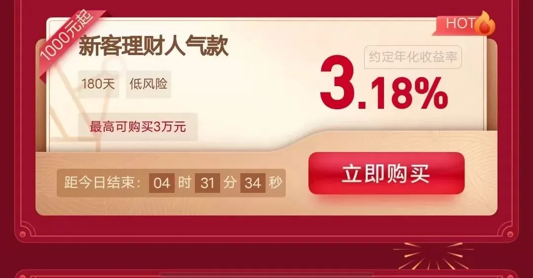 【新客理财】3.18% 3w 180天利息477