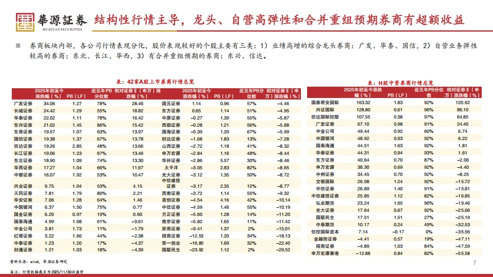 第一类是ROE能稳步提升的龙头,中信、华泰、广发是定海神针。
