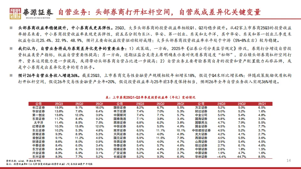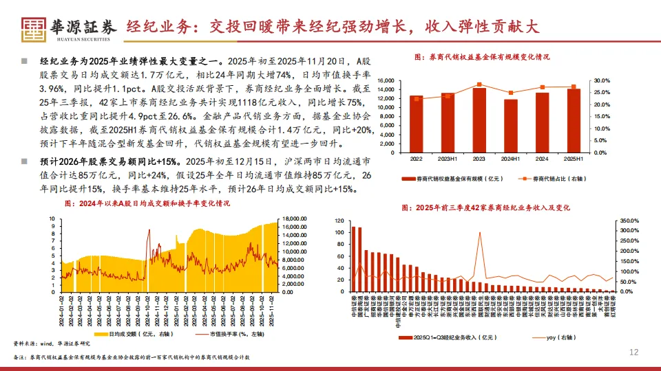 现在的竞争重点已经转向了财富管理和投顾服务。截至2025年上半年,券商代销权益基金的保有规模达到1.4万亿元。监管层正在大力推动从卖方销售向买方投顾转型。我觉得2026年的看点在于,如果成交额能维持15%左右的增长,且新发基金持续回暖,那些产品体系创新快、服务能力强的公司,如东方、兴业,将展现出更强的业务黏性。