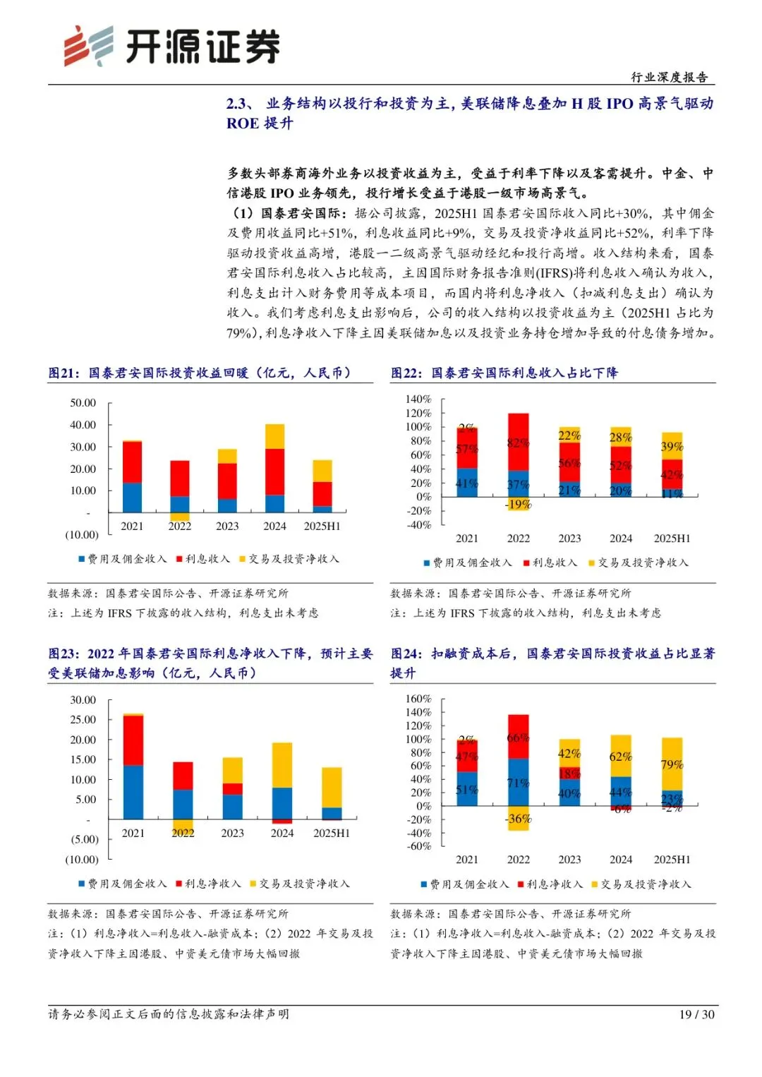 2.3、 业务结构以投行和投资为主,美联储降息叠加H 股IPO 高景气驱动ROE 提升